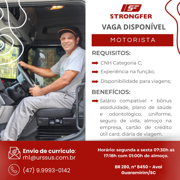 Ensino médio completo, maior de 18 anos, disponibilidade